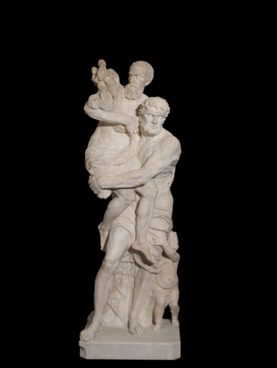 As Troy burns, Aeneas puts his father on his shoulders, takes his son by the hand, and leads them out of the ruined city. This famous image—perhaps the image of Western civilization—is depicted in many sculptures and paintings; one of my favorites was done by Filippo Parodi (1630–1702). I love it because not only is Aeneas carrying Anchises, but Parodi has positioned young Ascanius, Aeneas’s son, to make it seem as if the boy is holding up his father and grandfather and the household gods, the whole Russian-doll-like stack of them. Ascanius, young as he is, has a job to do: to learn how to be a grown-up; to prepare to shoulder the burdens of the world.