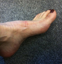 When was it, yesterday? Standing, stork-like, shaving my shins, that I saw a deep red line, an impression across my foot, as if my shoes had been too tight. Another line pressing across the other foot.